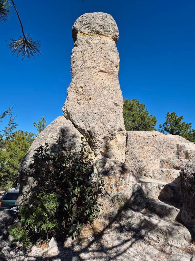 Heute konnten wir es wirklich gemütlich nehmen, denn wir starten unser Tagesprogramm erst um 10.00 Uhr. Pünktlich wie eine Kuckucksuhr stehend wir bereit. Eduardo oder für uns Europäer Edy stand bereits mit senem Chevrolet bereit. Er kann nicht gut englisch, aber er gibt sein Bestes. Wir können uns irgenwie verständigen. Wir fahren am Kupfercanyon entlang und schweben dann mit der Garaventa-Bahn zum nächsten Hügel. Davor machen wir noch ein paar Stopps. Zuerst bei Catarina, die uns von den bösen Lasten befreien würde. Scharlatan? Brauchen wir das? Mhhh? Nöö! Wir sind total rein, keine Frage und verzichten gerne und ich bereue es keine Minute. Oli und José hingegen nehmen an der Zermonie teil. Als eine Zigarette ins Spiel kommt, reichte es mir und wir verlassen die Hütte. Eben, wir haben nichts verpasst. Dann geht es zum Penis-Stein. Heute heisst er Fruchtbarkeitsstein. Frauen, die Schwanger werden wollen, können ihn umarmen und dann "Peng" wird man schwanger...