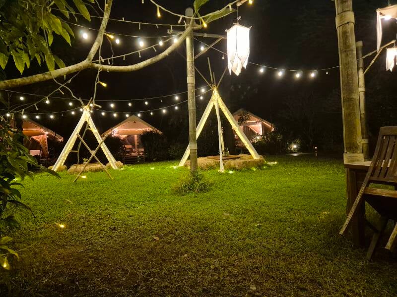 Am späteren Nachmittag stand noch die Zugfahrt über die Death Bridge bevor. Der Zug kam mit der thailändischen Pünktlichkeit an von fast 20 Minuten und fuhr dann ganz, ganz langsam über die Brücke. Wir haben es überstanden und nun ging es rasant weiter. Auch wir mussten zügig zu unserem Camp weiterfahren, so dass wir noch bei etwas Tageslicht unser Zelt beziehen können. Eine schöne Anlage am Fluss. Die Zelte mitten in der Natur eingebeten. Um 22.00 Uhr ist Nachtruhe. Der komplette Gegenpol zur letzten Nacht mitten in der Grossstadt von Bankok. Nun geht es zum Barbecue.