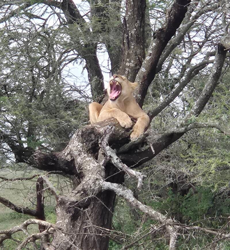 Die Reise führt uns weiter. Wir beobachten wie die Zebrad im Fluss stehen und trinken. Die Gnus an uns vorbei joggen inkl. den kleinen Babygnus, die wacker mit den Grossen mithalten. Bis wir zum Honeymoon-Löwenpärchen kommen. Naja, wir können es dann doch nicht lassen... Bleiben und beobachten wie der Löwe wieder Lust bekommt, zu ihr geht, genüsslich sein Spielchen treibt und herrliche Laute von sich gibt.
