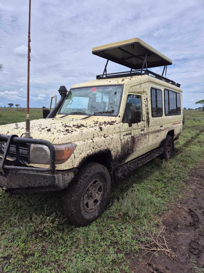 Auf den Strassen und Wegen spürten wir dann den nächtliche Regen. Fenster zu! Erde wirbelt in die Luft und klatschte an die Frontscheibe, dass Auto schwankt und schlidert im Schlamm und Bosco sucht den besten Weg herhaus. Doch wir kommen immer durch. Kein Steckenbleiben, kein Unfall, nichts. Was will man noch mehr? Wir erreichen eine Ebene voll mit Gnus. Martin kommt also auf seinen Genuss. Die Fahrt geht weiter und auch ich bekomme das Zückerchen. Geparden hier, Serval da, Löwen faul im Dreck. So darf es weiter geht. Um 9.30 Uhr ist dann Frühstücken angesagt. Aber wo? Irgendwo unter einem Baum. Naja, es hat hier ja fast keine Bäume. Mit dem Feldstecher suchen wir die Landschaft ab. Nichts. Ein Stück weiter, dass gleiche Spiel und so geht es rund eine Stunde weiter. Jaaa, mein Bauchgefühl hat wohl irgendwas gespürt und so ging der heutige Gamedrive ohne Frühstück und irgendwas vorüber. Immerhin kommt die Sonne immer mehr hervor und die Strassen/Wege trocknen ab und was die Tierwelt angeht... da dürfen wir uns wirklich nicht beklagen. Sogar ein Leopard finden wir schlafend auf einem Baum. Top! Alle Raubkatzen an einem Tag. Zebras, Giraffen, säugende Gnubabys, Schildkröten, Schakal und eine Menge Antilopen verfolgen uns den ganzen Tage. Nur ein Sasu zeigte sich nicht. Aber dieser Vogel aus Lion King finden wir in den nächsten Tagen bestimmt noch. Und so gehen wir heute bereits um 16.00 zu unseren Lodge zurück. Wir möchten noch etwas die Sonne geniessen und vielleicht gibt es doch noch den einen oder andere Snack für uns.