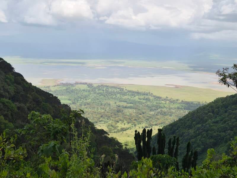 Das Wetter sieht viel versprechend aus. Mit geschlossenen Dach und ziemlich Tempo machen wir uns auf zum Ngorongoro Kater. Es ist nicht mein Nationalpark. Ich könnte gut darauf verzichten. Es wurde aber eingeplant und so gehts jetzt in diesen zusammengebrochenen Vulkanberg. Geschichtlich sicher interessant, immerhin liegt das über 18 Millionen Jahre zurück. Es sieht aus wie ein grosser Suppentopf. Der Kraterboden liegt auf etwa 1700 m, und die Seitenwände sind zwischen 400 und 600 Meter hoch, so dass die Kraterkante auf etwa 2300 m liegt. Scheint die Sonne nicht. Ist es ziemlich kalt, so wie die letzten beiden Male. Der Durchmesser des Kraters beträgt zwischen 17 und 21 Kilometer. Insgesamt hat der Krater eine Fläche von 26400 Hektar. Von oben herab sieht man einfach nur Grün mit ein bisschen See. Kommt man runter, da empfangen einem dann die Tiere.
