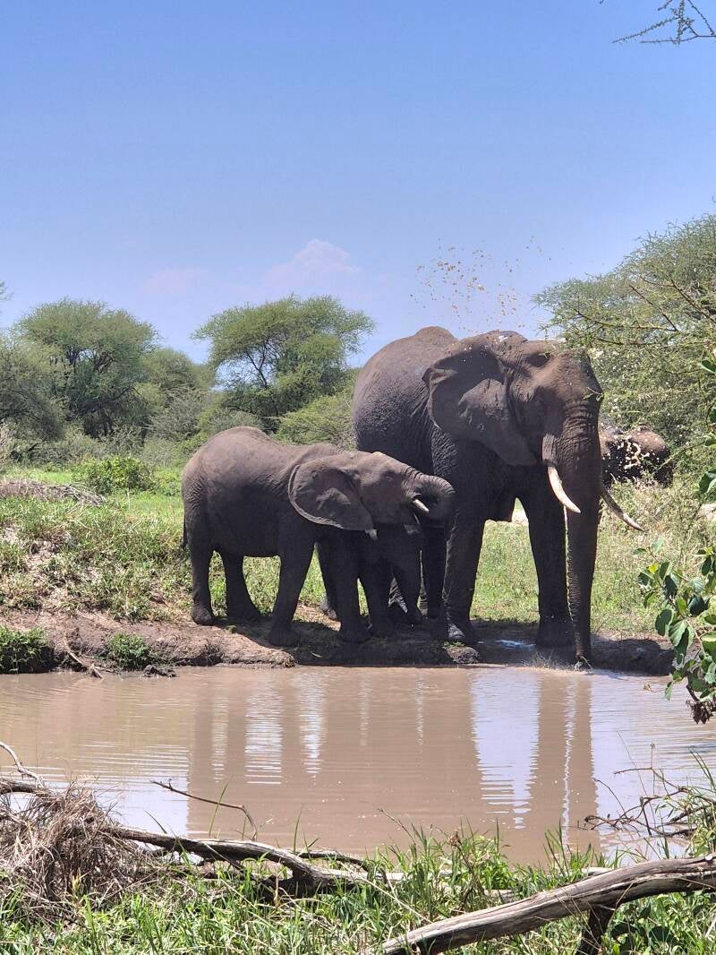 Wir möchten heute ein paar Elefanten sehen. Immerhin ist der Tarangire-Nationalpark bekannt für die grosse Anzahl der Elefanten. Doch zuerst werden wir von der Vogelwelt begrüsst. Das Buschchicken verfolgt uns überall sowie auch der Eisvogel. Aber dann... Hallo Sasu! Du hast dir vielleicht Zeit genommen um dich zu zeigen. Ab diesem Zeitpunkt sahen wir dieses Federvieh immer wieder. Jetzt wären aber die 6-Tönner dran und ja, diese kamen und kamen und kamen und kamen und kamen... Bei über 200 Tiere hörten wir auf zu zählen. Immer wieder grosse Gruppen und am Fluss dann eine abartige Menge. Sie pflantschen, tranken Wasser, legten sich ins Wasser oder liefen einfach im Tümpel herum. Gross und Klein, jeder hatte seine Freude, und wir natürlich auch.